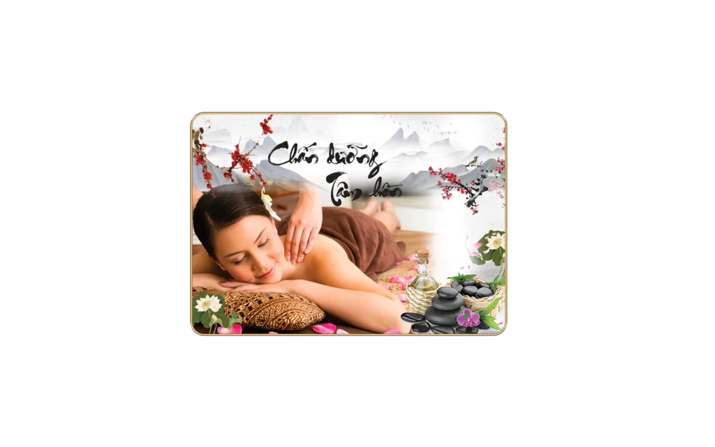Không chỉ đơn thuần là tranh trang trí, tranh dưỡng sinh tráng gương còn góp phần tăng cường trải nghiệm thư giãn cho khách hàng. Hiệu ứng phản chiếu ánh sáng dịu nhẹ giúp không gian trở nên ấm áp, dễ chịu, hỗ trợ tinh thần thả lỏng trong suốt quá trình massage cổ vai gáy và chăm sóc body.